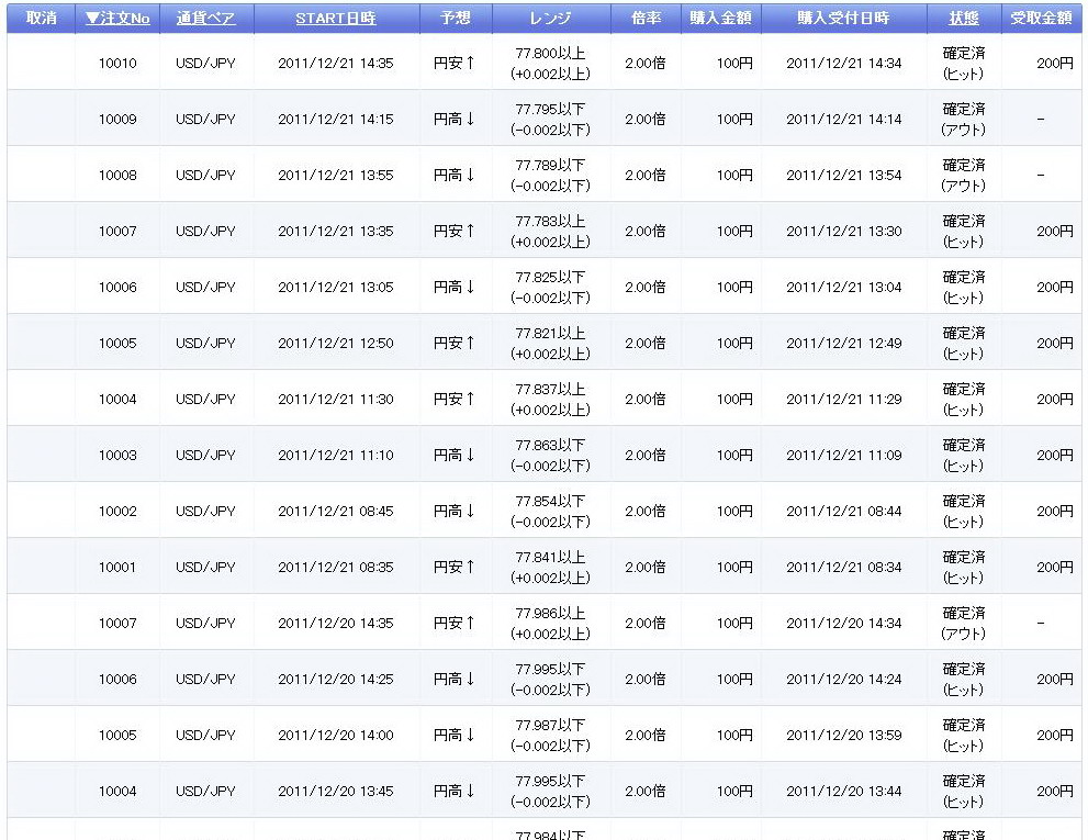 休むのも勝負ですよね。4回共、レンジにはまってしまい、クリック証券に取られたようです。昨日は4勝3敗だったので、今日と昨日で半々の勝負でした。